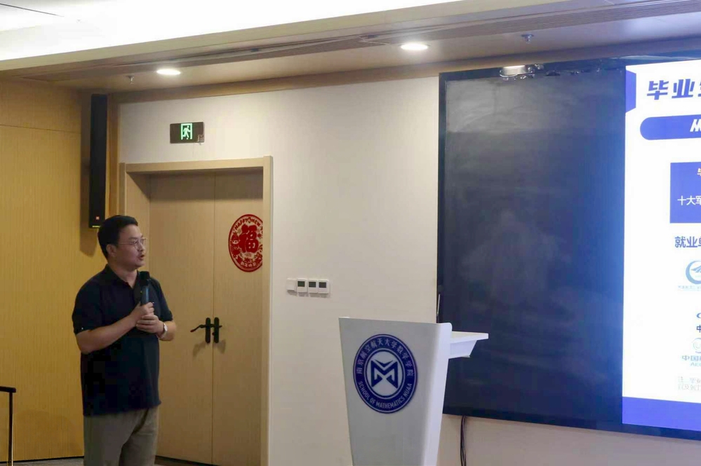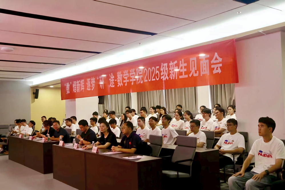 9 月 2日下午,数学学院在将军路校区主楼12001 报告厅举办“数熠新辉,逐梦研途”2025级研究生新生见面会。学院党委副书记王亚鹏、副院长徐江、数学系主任周良强、计算科学系主任龚荣芳、研究生教务员鲁晓林,以及2025级全体研究生参加会议,紫金山实验室人事部副部长闻然受邀到场为新生讲授研究生开学第一课。会议由学院团委书记、研究生辅导员康怡宁主持。