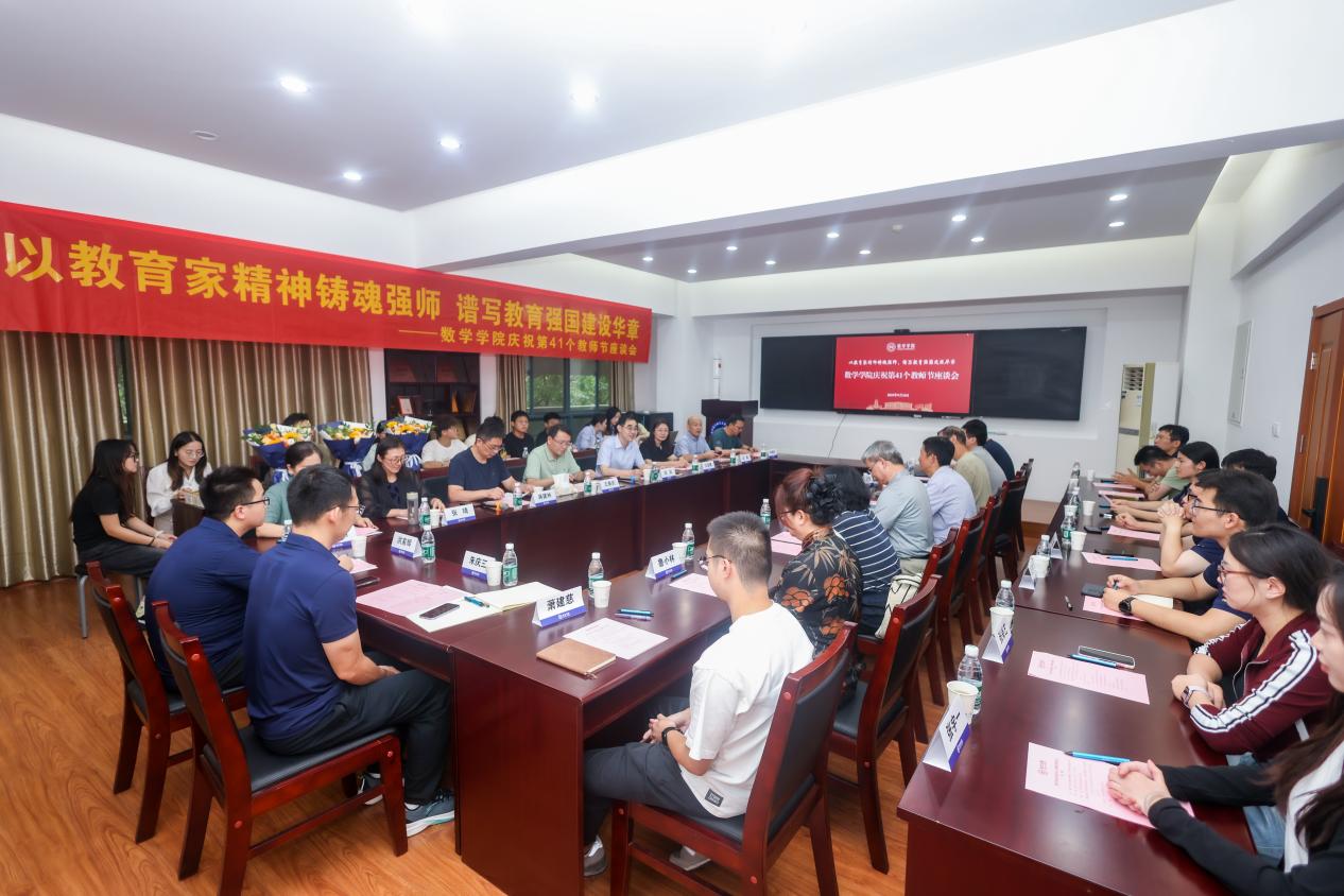 师者如光,薪火相传。为深化落实教育强国建设要求,营造尊师重教的浓厚氛围,9月10日,数学学院召开“以教育家精神铸魂强师,谱写教育强国建设华章”庆祝第41个教师节座谈会。学院班子成员,院长助理、离退休教师、入职秩年教师、新入职教师、初登讲台教师、系/中心负责人、机关人员等30余名教师代表参会,会议由学院党委书记张跃主持。