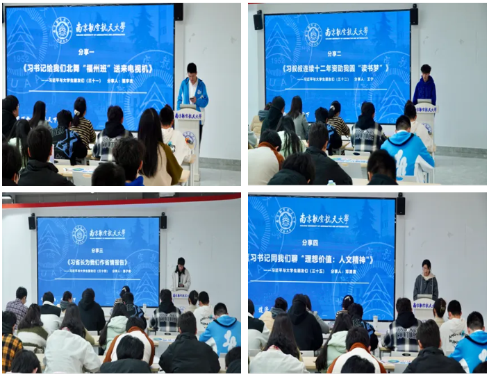 学院党委副书记王亚鹏、0824201班班主任吴健、0824401班班主任朱小萌做客“数说未来”学习分享会,与0824201团支部和0823101团支部团员面对面交流。活动组织师生围绕《深入解读党的二十届四中全会精神》和《趋势藏在细节中:读懂“十五五”规划建议》开展专题学习分享,引导团员青年深入感悟时代使命与家国情怀。吴健强调,新时代人工智能迅猛发展,各行业对数学学科的需求日益凸显,鼓励同学们主动拥抱时代变革,把握国家战略机遇,将个人成长融入科技发展大势,以扎实的数学基础迎接未来挑战。朱小萌立足学科优势,深入浅出地阐释了国家对基础学科的重视,指出数学在数字经济、社会治理和国防科技中具有不可替代的作用,勉励同学们珍惜机遇,勤学笃行,成长为兼具专业深度与家国情怀的南航人。