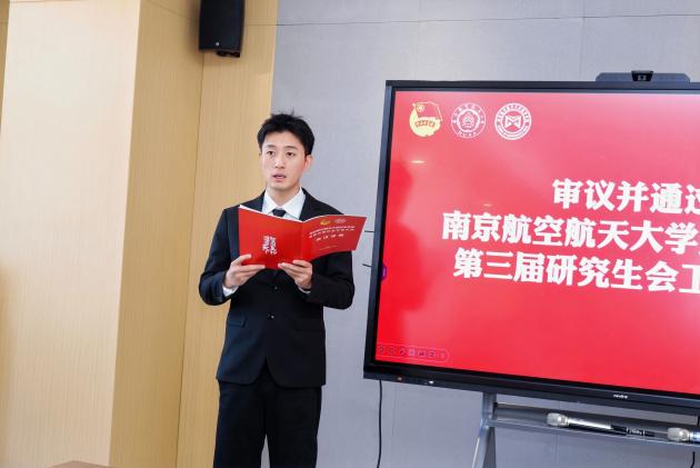 赵然代表校研究生会致辞,肯定了上届研究生会的工作成果,并期望新一届组织以此次大会为新起点,持续强化思想引领、优化学生服务、加强自身建设,推动各项工作再上新台阶。
