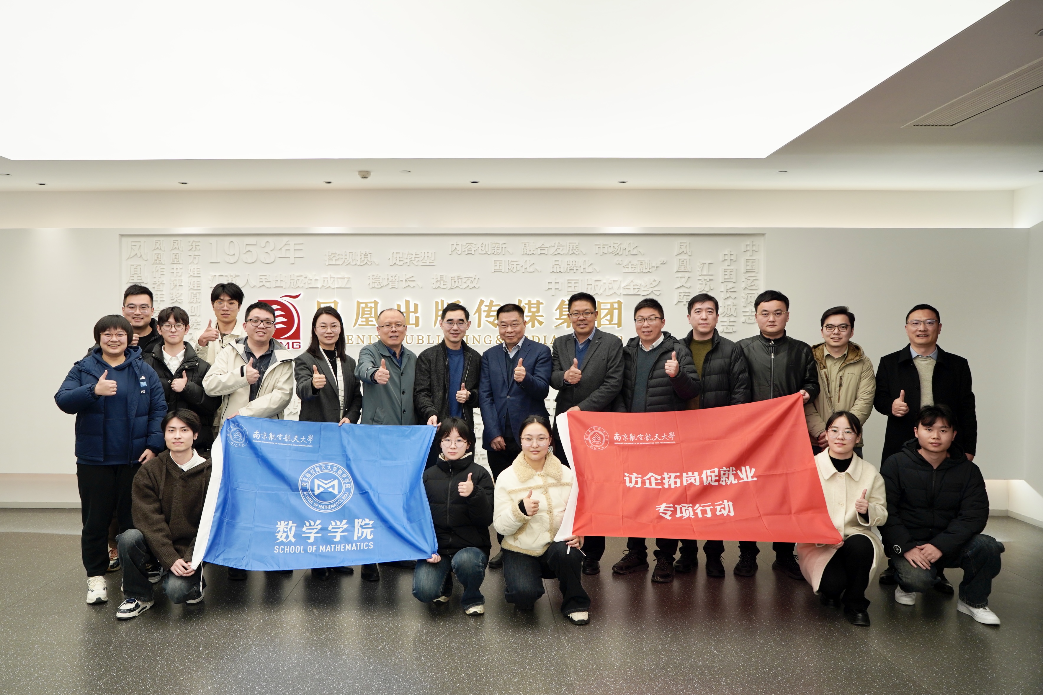 为精准对接用人单位人才需求,拓宽学生实习就业渠道,12月5日,数学学院党委书记张跃带队,党委副书记王亚鹏、计算科学系教师范川、概率统计系教师王炜、辅导员刘思佳及本研学生代表共10余人,赴凤凰出版传媒集团开展访企拓岗促就业专项行动。