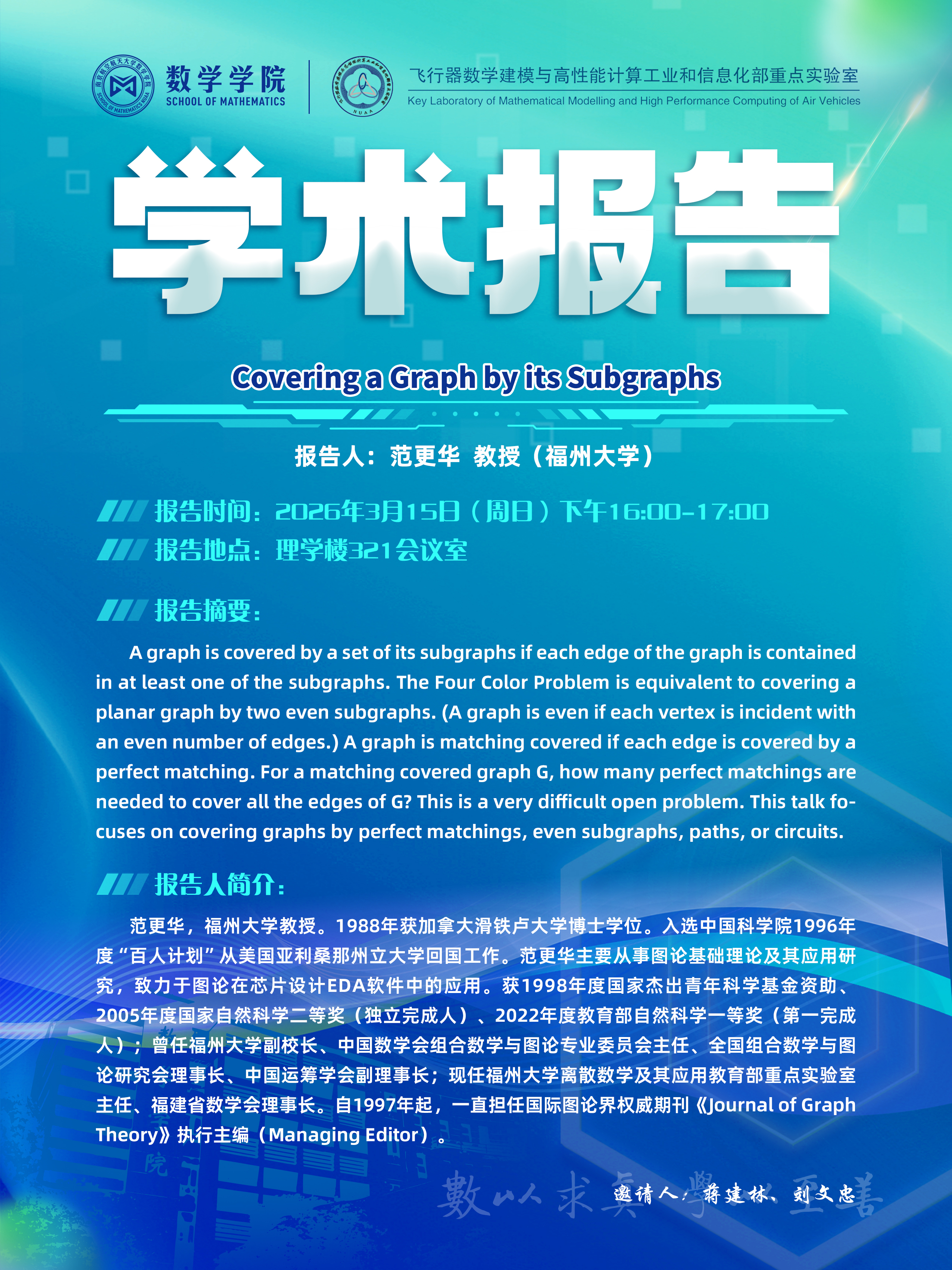 【学术讲座 3.15 范更华 福州大学】
